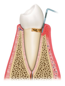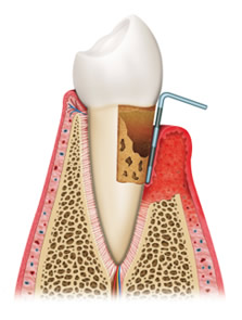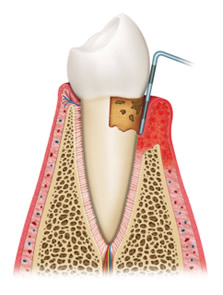 This picture shows that untreated calcified plaque causes the destruction of both the bone and the gum tissue that surrounds the tooth.